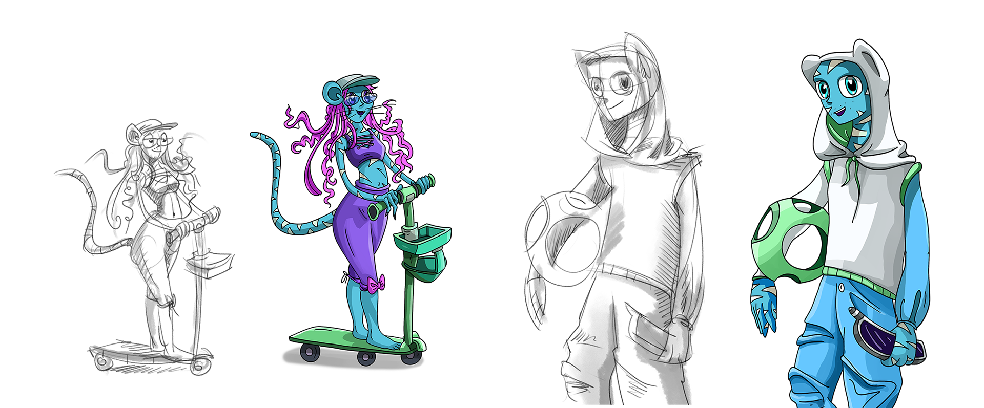 Für das Lernspiel "HVV Spacetour" habe ich diverse Charaktere entwickelt. Hier ein Einblick in den Entstehungsprozess.